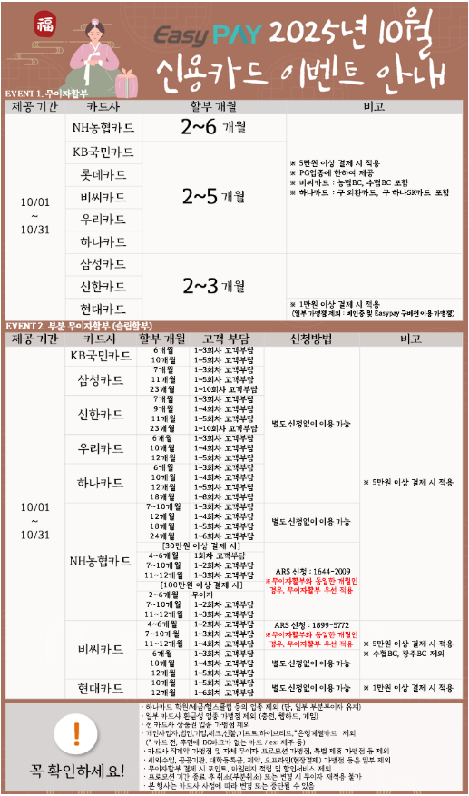2025년 10월 카드사 무이자 할부 안내